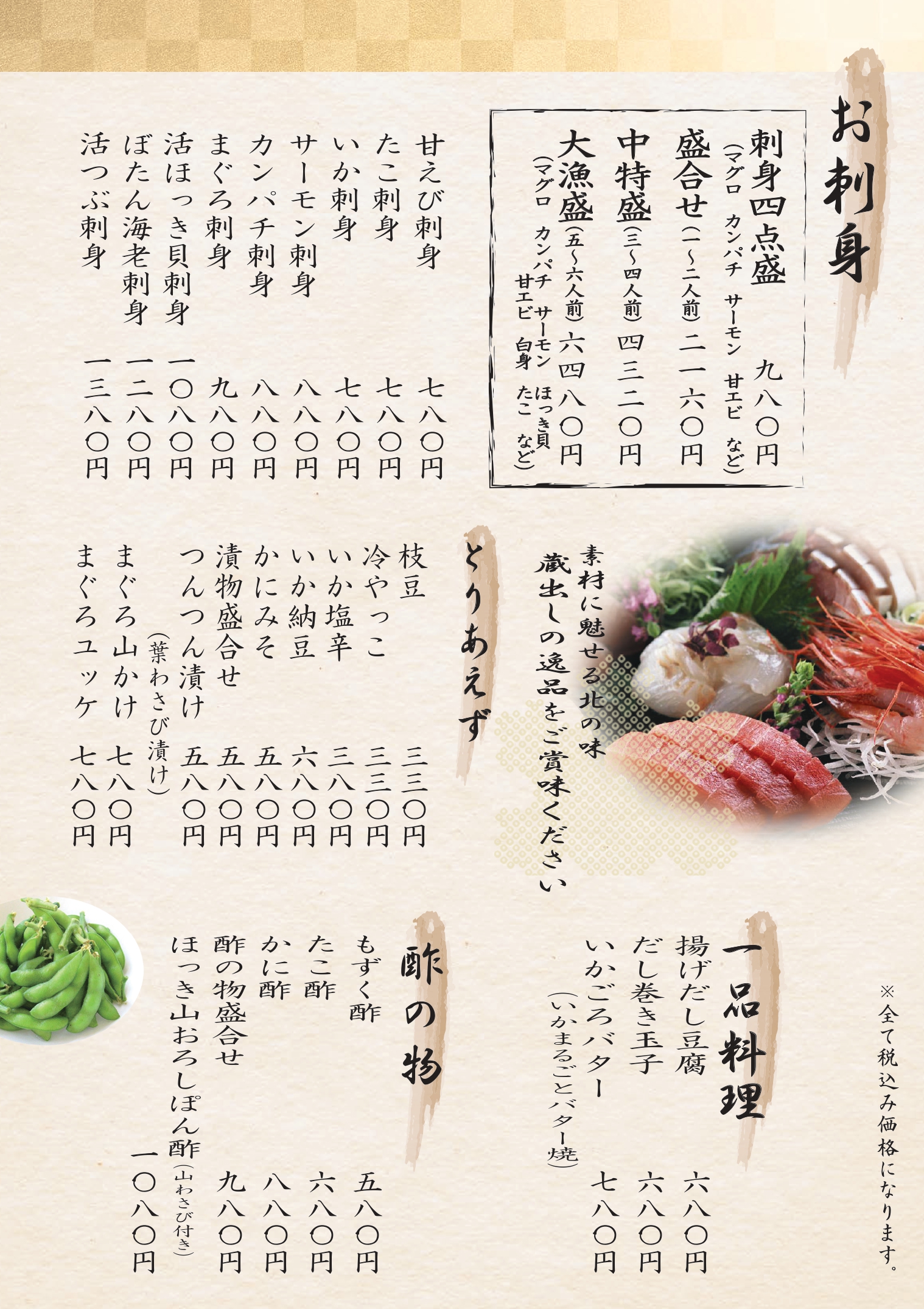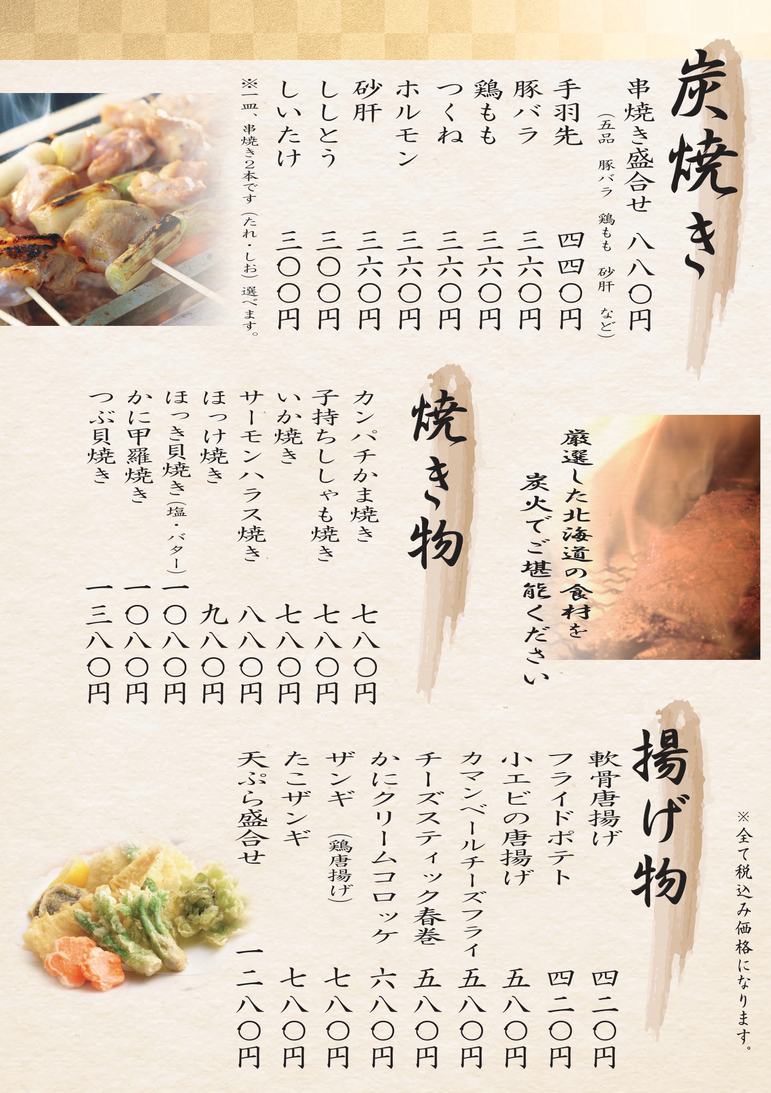 北の味覚にこだわった、当店自慢の宴会プランです。令和7年4月より6000円(税込み)になります。